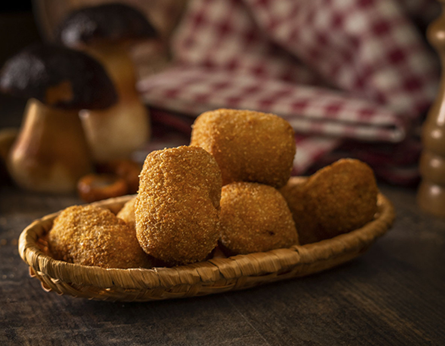 Nuestras croquetas de Boletus Edulis son un homenaje al sabor natural y auténtico de este hongo tan apreciado en la gastronomía. Su intenso aroma y textura carnosa se combinan con una bechamel suave y cremosa, creando un bocado delicado, elegante y lleno de matices. Para los apasionados de las setas siempre serán un acierto. Una de nuestras croquetas con un sabor más intenso y característico que te permitirá llevar el sabor del monte directo a tu paladar. Toda una delicia que encantará no solo a los amantes de las setas.
