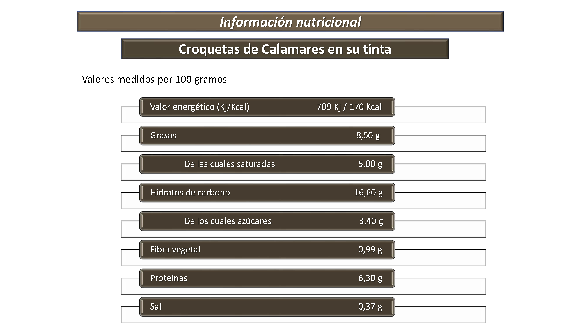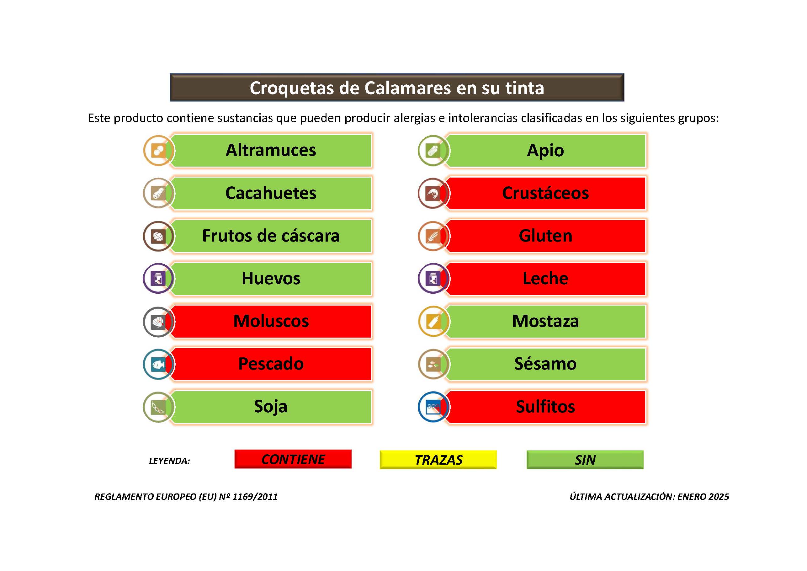 Leche, mantequilla, harina, sal, calamar, tinta de calamar, nata, encolante (harina de maíz, almidón de maíz, sal, goma guar y xantana)