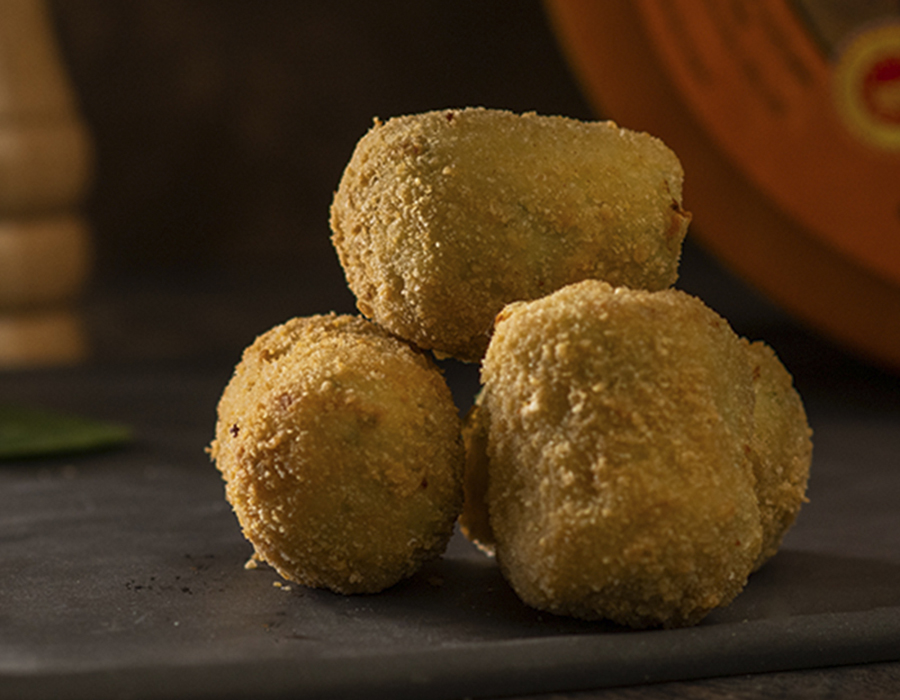Nuestras croquetas de cecina con queso Payoyo combinan dos joyas gastronómicas: la cecina curada, con su característico sabor ahumado e intenso, y el queso Payoyo, reconocido por su textura cremosa y matices únicos. Juntos crean una croqueta sofisticada, equilibrada y llena de personalidad.