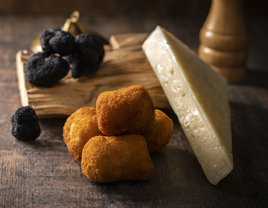 Una delicia para tus sentidos, maridando un ingrediente selecto como es la trufa con un excepcional queso parmesano. Una croqueta que no podrás parar de comer gracias a su exterior crujiente y su interior cremoso que te dejara con ganas de más.