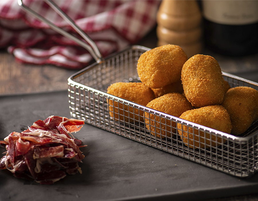 Quizás una de las recetas más icónicas de la gastronomía casera de España sean las croquetas de jamón. Combina a la perfección la suavidad de la bechamel, el toque salado del jamón y el crujiente del empanado. El exquisito jamón ibérico nos permite ofreceros unas croquetas con una potencia de sabor superior.