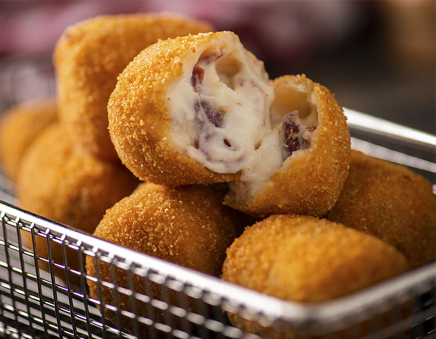 Disfruta de la auténtica croqueta casera, elaborada con jamón ibérico 100% de máxima calidad. Su bechamel suave y cremosa, unida al inconfundible sabor del jamón curado, da como resultado una experiencia gourmet en cada bocado.